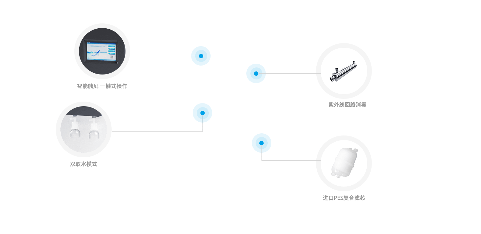 水處理量:10-100L,產水水質符合YYT1244-2014、WST574-2018分析實驗室用水I/II/III級水標準